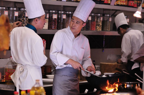 现在的厨师,不再是一直穿梭在厨房里忙碌着,他们站在餐桌旁,穿着洁白的厨师服,心灵手巧的设计着一道道美味佳肴,把各种食物装饰成绿叶、装饰成河流、装饰成具有自然与人文气息的艺术作品,他们的工作,轻松有趣,让很多人羡慕。