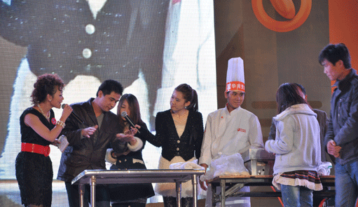 我校领导朱伟带领老师和学生参加这次大型跨年宣传推广活动的飞饼绝活表演。通过这次表演活动,体现我校教师良好素质和精神风貌,让广大市民对我校厨师专业“厨师--热门行业,高薪职业,永不失业”有了更加深刻、生动的认识。