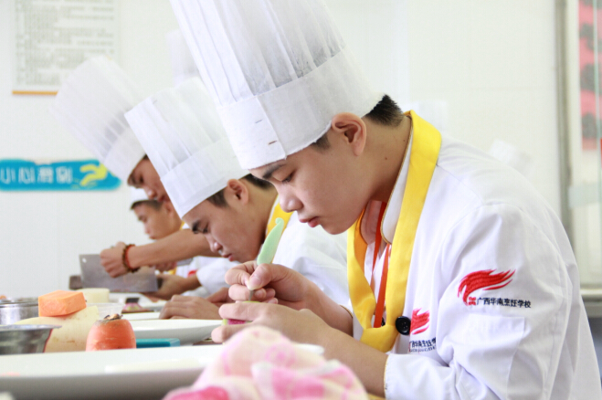 广西华南烹饪学校里有许多是大师级别的厨师,相信你在学校里学习,耳濡目染,在名厨大师的熏陶之下,你一定会收获不少。厨艺是厨师立足的关键。要成为一名优秀的厨师,必须拥有精湛的技艺。如何才能拥有精湛的厨艺?