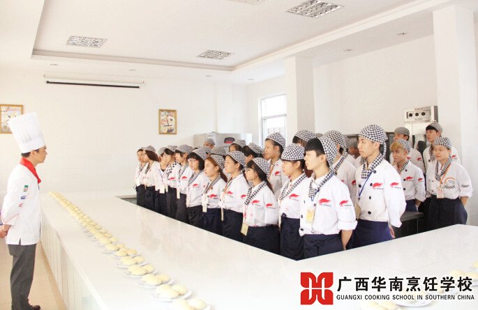 广西华南烹饪学校一所被誉为“华南第一校”人才教育基地的厨师学校。学校拥有全新不锈钢油气灶台,建有国内一流水平的切配、热菜、冷拼、雕刻、西餐、面塑、糖艺以及调酒等各类实习大厅及标准模拟餐厅。在教学方面,“理论联系实际”和“技能+学历”,着力培养学生实际动手能力和酒店工作岗位适应能力。独创的互动式模拟餐厅,更是从根本上保证了教学质量,同时也开创了烹饪教育之先河。