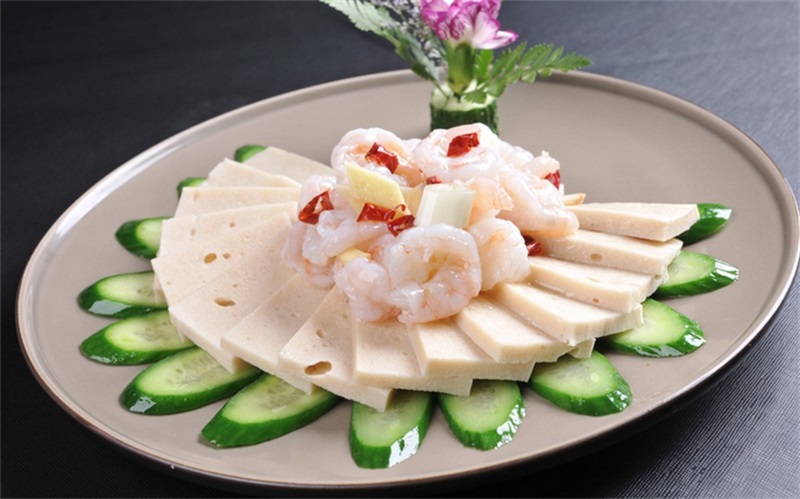 滑炝虾仁千页豆腐