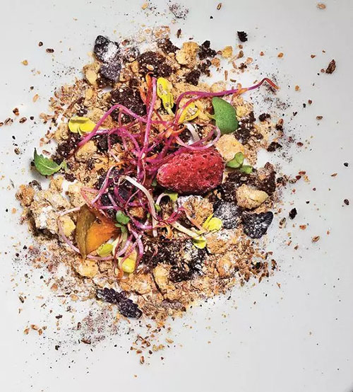 他评价自己的烹饪是创意、文化和技艺的碰撞,他把盘子当画布,食物当画笔,结合传统和分子料理,“画”出了可以吃的艺术菜肴。