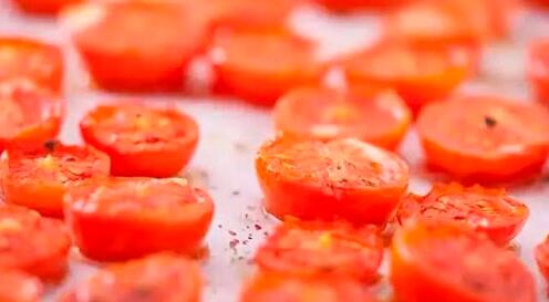 圣女果,作为盘式存在与盘子中基本不是以整粒果实存在,它往往是被切开两瓣,亦或切开成花瓣样式,搭配其他辅料而成。