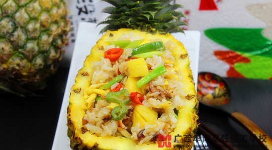 菠萝饭,粤式菜系中的经典饭之一。菠萝酸酸甜甜的口感,再加虾米的酥香、鸡蛋的香滑,配一点蒜、红辣椒、青辣椒,味道真是极好的!赶快学一下吧,切莫辜负了这满大街的菠萝哟。