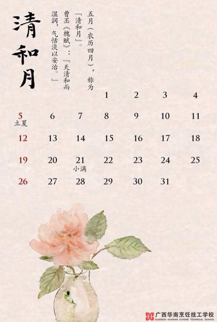 【立夏】《月令七十二候集解》中说:“立,建始也,夏,假也,物至此时皆假大也。”这里的“假”,即“大”的意思,是说春天播种的植物已经直立长大了。