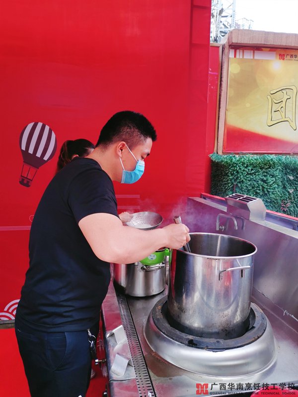 来自钦州的孙允强先生之前也自己开过店,但是发现赚不了几个钱,想转行从事餐饮。有一天,在手机上刷到了螺蛳粉的广告,热门有食欲的螺蛳粉一下子吸引了孙先生的注意,他发现这是一个商机,于是来到广西华南烹饪技工学校进行咨询。