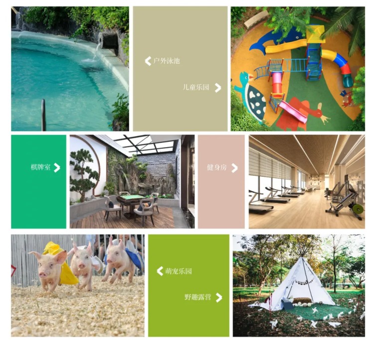 酒店内设有茶室、会议、宴会厅、酒吧、健身房及休闲区,外部设有天幕露营草坪,儿童游乐区 /攀岩、动物喂食区等。未来,酒店将打造成安吉味道的品质生活汇聚之所。
