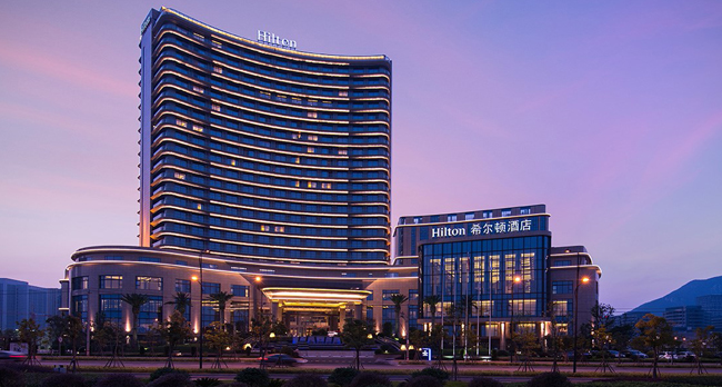 千岛之城,碧海无边,舟山希尔顿酒店坐落于舟山群岛新区普陀东港内湖商圈,与著名的“海天佛国”即中国四大佛教名山之一普陀山隔海相望,毗邻沈家门渔港美食街,并且距离购物中心及娱乐休闲商场仅咫尺之遥,让您时刻感受城市脉动,舟山希尔顿酒店拥有时尚舒适的客房及先进完善的设施;多样的餐厅与酒吧为您提供丰富的餐饮选择,378间客房均有迷人的湖景和海景,3间具备特色的餐厅和酒吧提供丰富的美食体验,会议空间面积达2600平方米,可容纳2000人,1100平米无柱大宴会厅,24小时健身中心、水疗中心和室内恒温游泳池,坐拥海天美景的屋顶露天花园。