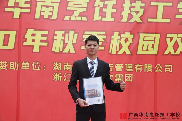 双选会上,这个装扮得体、精气神十足的少年,是梁亦健,是今年毕业的大厨1805班的班长,手上简历厚厚一沓,看上去对这次的招聘自信满满。