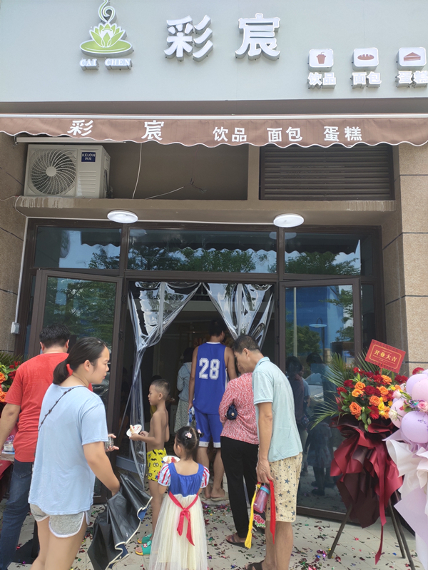 店面在学校的大力支持下和帮扶下取得了筹备妥当并正式营业。开业当天,门庭若市,生意火爆,华南烹饪的西点教师李丽珍、农维福和创就业指导老师前往店面帮忙,一款款热销面包火热出炉,整个门店弥漫烘焙香气。