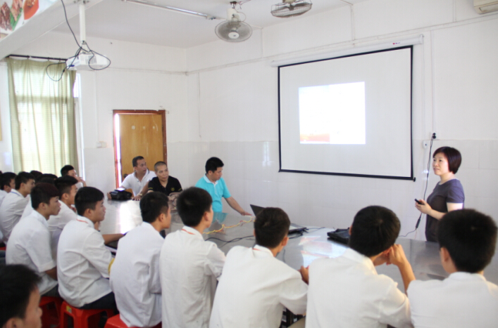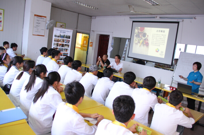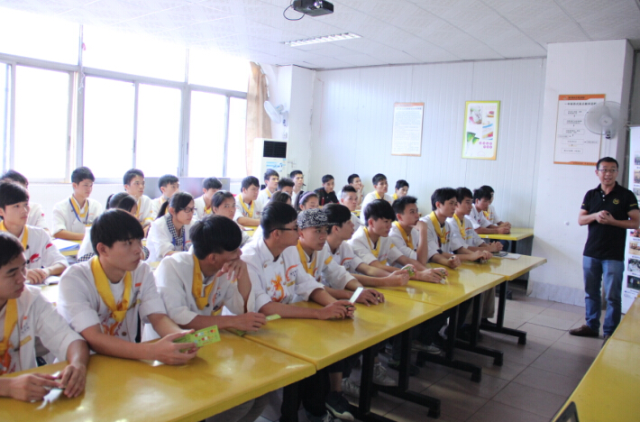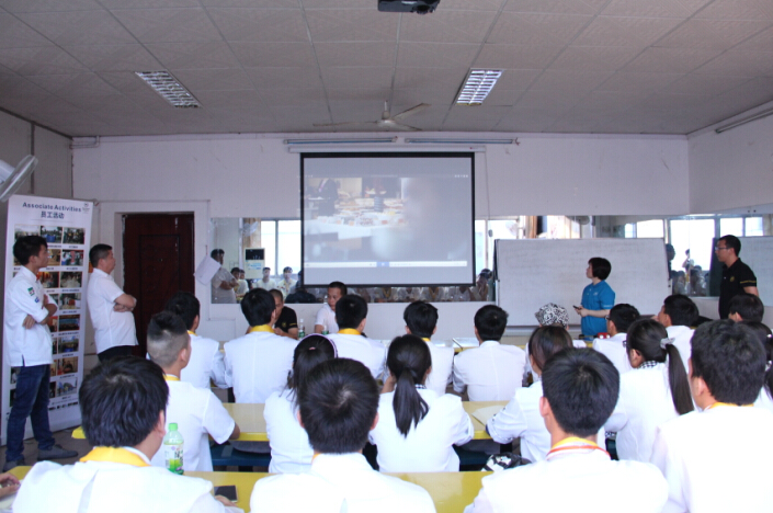 近日,中山喜来登酒店到我校进行招聘宣讲会。中山喜来登酒店财务总监夏瑛女士、安全事务总监兼工会主席梁鉴祥先生、招聘经理李小强经理、酒店行政总厨欧阳先生以及我校校区负责人朱伟老师、就业办主任陈新操老师、教务主任黄盛大师及大厨128班、金牌五班、学生会成员的同学参加了本次宣讲会,本次宣讲会由陈主任主持。