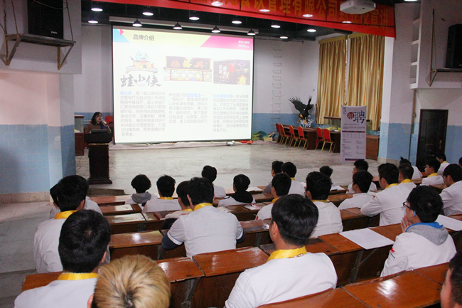 2017年3月7日,广西知名餐饮企业广西湘范儿餐饮管理有限公司来到我校进行招聘。作为全国知名餐饮品牌蛙小虾的运营公司,招聘宣讲一开始,学校大礼堂内就坐满了人。