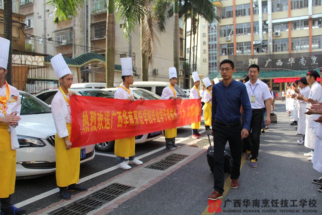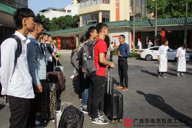 近日,广西华南烹饪技工学校又有一批学生学业结束,成功的走上就业岗位。5月26日上午,广西华南烹饪技工学校就业办于主任欢送154班的20多名同学上岗就业。在欢送现场,就业办于主任与同学们交待了相关事宜,并预祝学子们明天会更好。