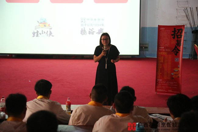 为加强学校与企业之间的沟通、交流,促进用人单位与毕业生之间的双向选择。今天广西华南烹饪技工学校邀请广西湘范儿餐饮管理有限公司为我校即将毕业班进行企业宣讲。