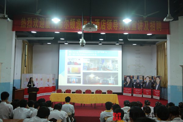 广西华南烹饪技工学校即将实习的同学们参加了此次宣讲会。宣讲会现场,各位领导给同学们带来了一场精彩的讲解,分别从公司的发展历程、发展前景以及发展过程中取得的成就等,到公司的员工福利、晋身机制让同学们对自己以后的实习岗位加深了解。宣讲会后,厦门希尔顿逸林酒店也向同学们抛出了橄榄枝,希望他们能够到酒店实习工作。
