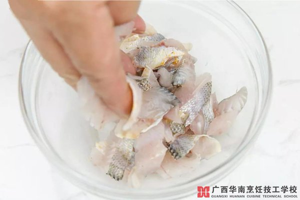 1、小黄鱼洗净后去骨切小片。