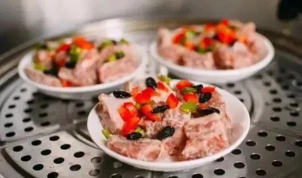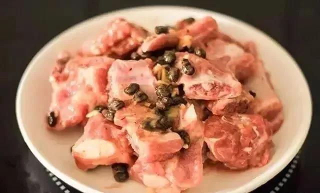 3、倒入装排骨的碗中,与豆豉和蒜蓉一起搅拌。
