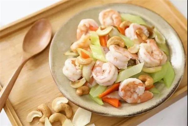 9、放入虾仁,翻炒均匀,最后加盐,翻炒几下即可出锅。