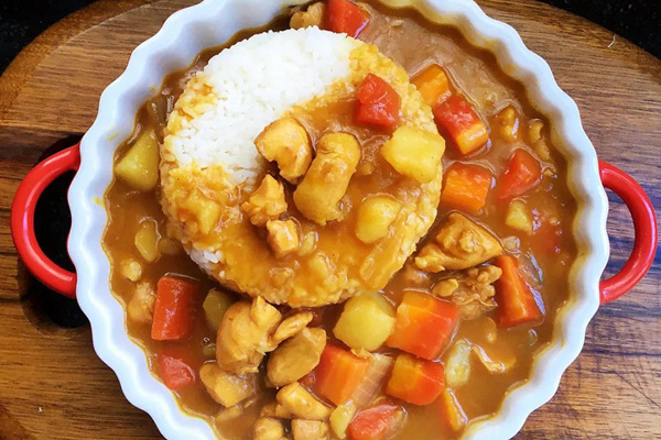 15. 浇上炖好咖喱鸡肉土豆,美美的一餐享用吧。