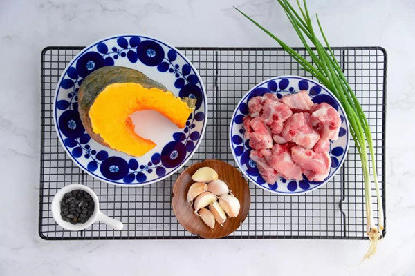 1.准备好食材,排骨下面铺南瓜或者荔浦芋头都是超级好吃的,或者可以试试看土豆。