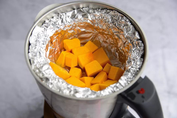 5.南瓜铺在碗底。