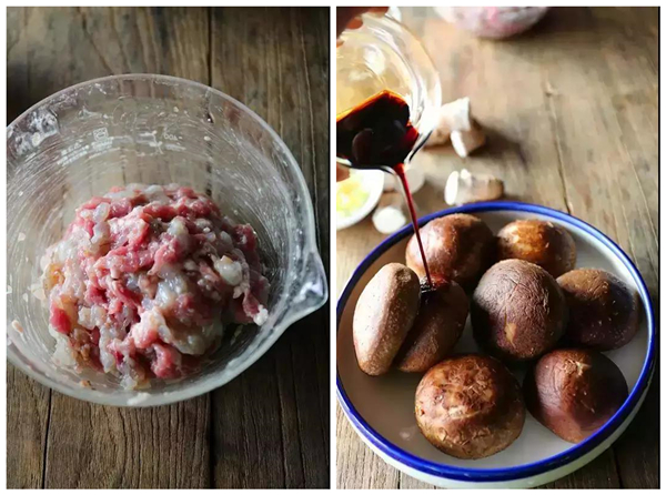 6、新鲜香菇洗净去蒂,放生抽腌制一下;