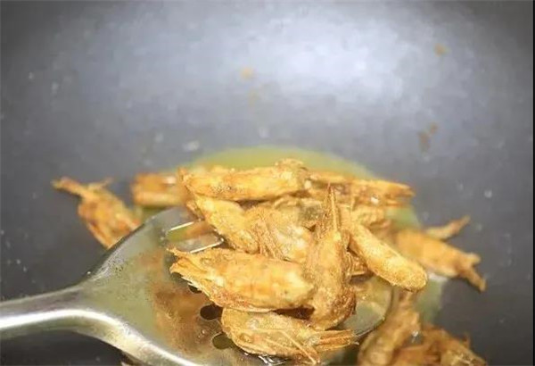 待全部虾头都浅焦黄时盛出