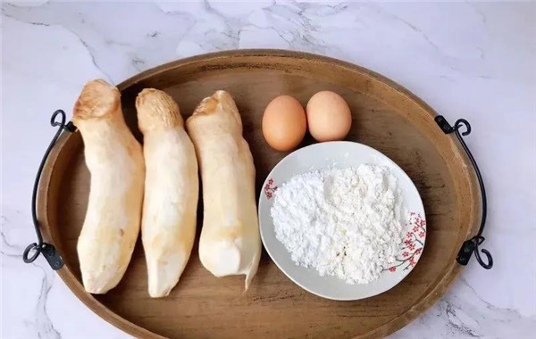 杏鲍菇3个、鸡蛋3个、面粉60克、玉米淀粉60克、水适量、盐0.5小勺、胡椒粉0.5小勺、椒盐少许、辣椒粉少许、食用油适量