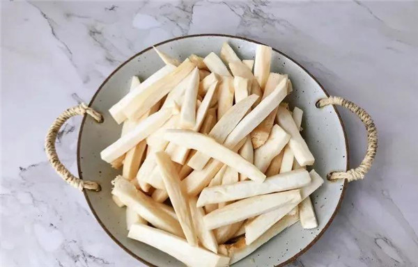 2. 杏鲍菇洗净切条,也可以用手撕成条炸出来口感更好。
