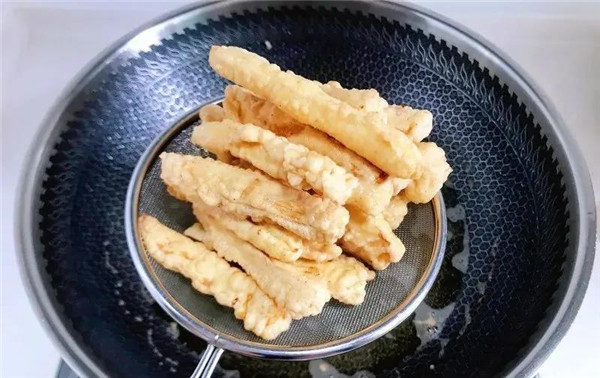 1、面糊不要调的太稠,调成普通酸奶状正好,鉴定油温用一根筷子插入油锅中,筷子四周冒密集的小泡就可以炸了,炸其他食材也是一样。