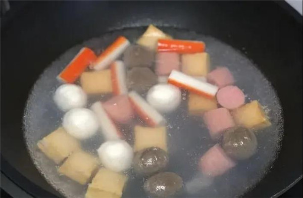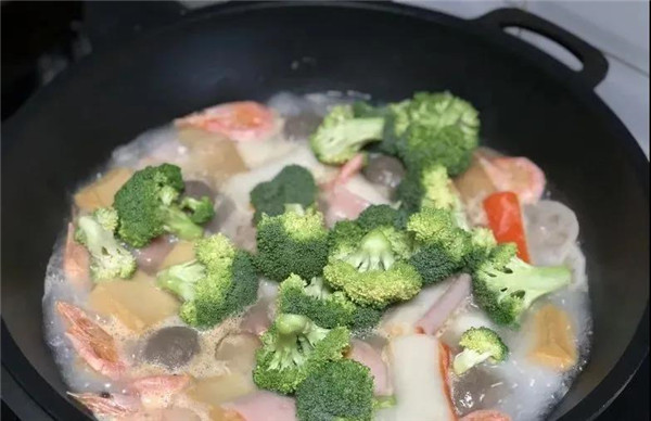 3. 全部准备就绪就可以进行焯水的工作了,锅中加入稍多清水,水开后下食材,根据食材成熟需要时间,先下入不容易熟的,后下容易熟的。