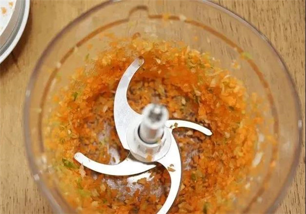 3. 胡萝卜和大葱切块,用绞肉机绞成碎末。