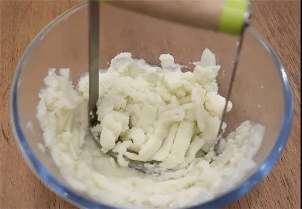 5. 蒸熟的土豆片压成细腻的土豆泥。