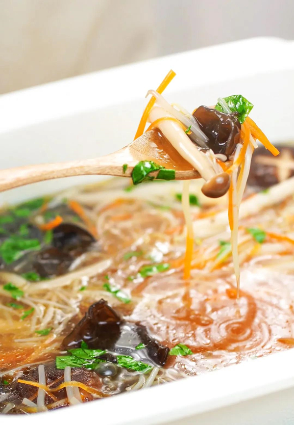 这满当当的一碗岂是一个“鲜”字了得!各种菌菇本就是素食界的天然提鲜剂,这一碗浓缩的精华跟荤版的佛跳墙比鲜也完全不在话下!
