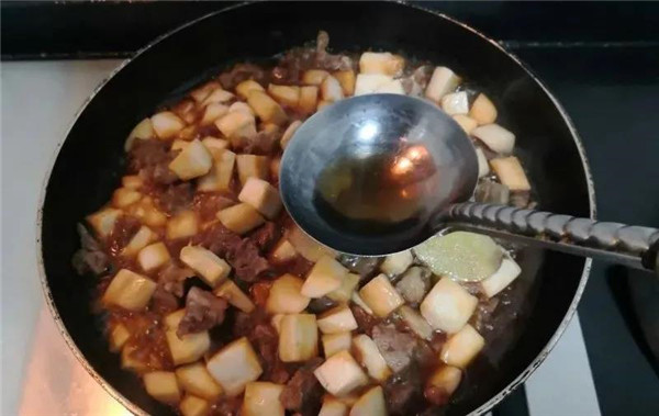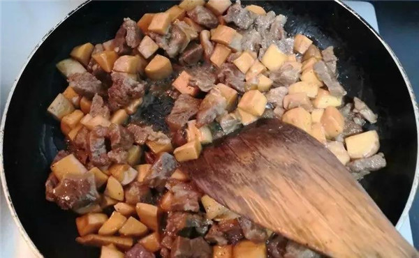 倒入牛肉粒