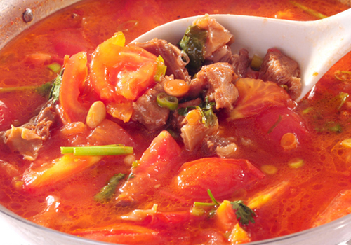 特点:如果将本菜装入沙锅或小铁锅,下面加酒精炉加热食用更加味美,这样也许就应叫“锅仔西红柿牛腩”了。