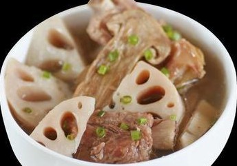莲藕排骨汤的功效起了可清热消痰、补血养颜的作用,若有贫血、心慌失眠的人吃了可以调节这些病。因为中和莲藕的热性,如果是是体质虚寒的人最好是用莲藕来煲绿豆或花生会比较好的。