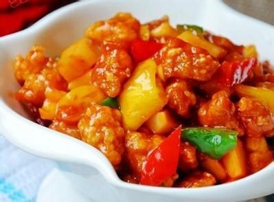 菠萝古老肉入菜口感清新解腻,酸甜的味道又能增进食欲。菠萝是我国南方的四大名果之一。菠萝果肉黄或浅黄,肉质细嫩,水分含量高,口感极佳,含多种有机酸及菠萝酶等。有帮助消化蛋白质、治支气管炎、利尿等功效,并对预防血管硬化及冠状动脉性心脏病有一定的作用。
