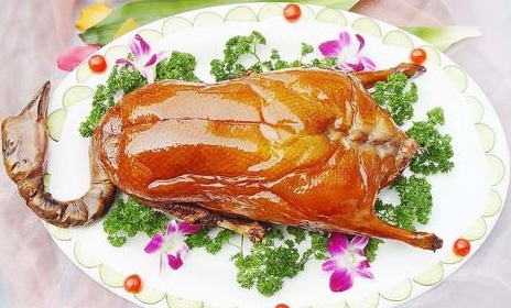 7.放入足够炭块,烧至炽红无烟,然后用长柄铁叉把鹅叉住,在离火焰上约33.3厘米左右烘烧,并把鹅身不停的转翻移动。使受火均匀,至皮现深红色内部熟透。