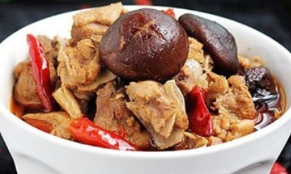 5、倒入泡软的干香菇,转小火盖上盖子焖煮40分钟,放入花椒翻炒均匀即可出锅。
