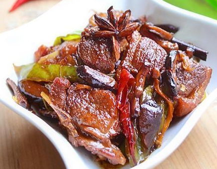 5、加入生抽,老抽炒至上色,加入啤酒,没过鸭肉,大火煮开后改小火;