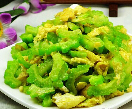 苦瓜2条,鸡蛋4个,盐、油、味精各适量。