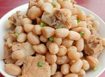 材料:排骨、姜、老抽、花生、葱、盐、八角