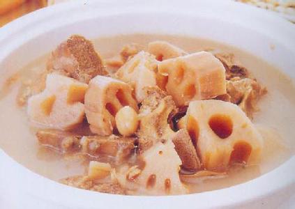 原料:莲藕1节、龙骨(猪脊椎骨)2块、花生100克、盐
