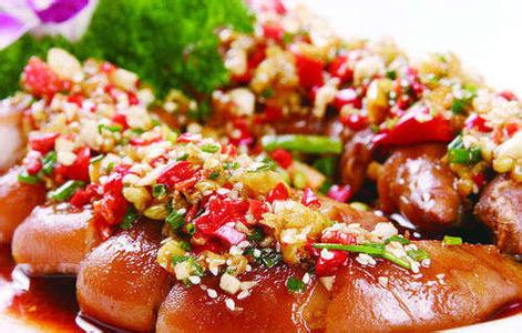 材料:猪蹄、葱、姜、八角、花椒、豆瓣酱、生抽、料酒、白酒、白糖、盐、鸡精(各适量)
