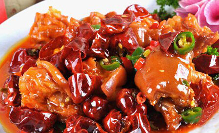 10、将肘子摆在盘中,码上小白菜,浇上辣椒汁即可。