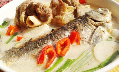 2、锅内放油上火,入葱、姜煽香,放入鳃鱼略煎,放入羊肉,加酱油、绍酒、精盐、黄酒、水少许,烧沸后用小火烧熟,加糖略焖,改用大火稠浓汤汁,放胡椒粉。