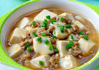 4、加入豆腐块,加入清水或高汤,水量仅没过豆腐块;