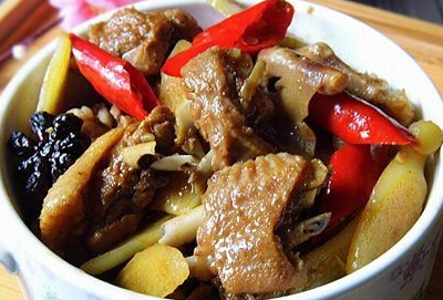 辅料:泡椒8个、生抽1勺、泡姜1块、老抽2勺、白糖1勺、料酒3勺、干花椒20克、豆瓣酱2勺、八角2个、蚝油1勺、茴香5克、丁香4个、姜500克、指天椒100克。