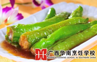 主料:猪肉馅200克,尖椒8~10个